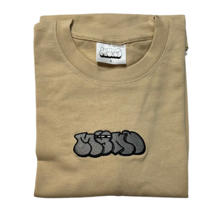 Oversized heavyweight cotton T-shirt. Embroidered front print. Custom neck tag.